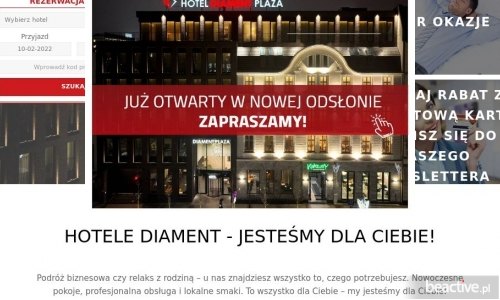 Hotele Diament to 14 hoteli dogodnie zlokalizowanych w centrach miast i przy kluczowych trasach regionu we Wrocławiu, Katowicach, Chorzowie, Zabrzu, Gliwicach, Siemianowicach Śl. i Ustroniu. Hotele oferują komfortowe pokoje, bogate zaplecze konferencyjne, parkingi oraz darmowy dostęp do Internetu. W wybranych hotelach czekać będzie na Państwa bogata oferta SPA. Organizujemy również catering.